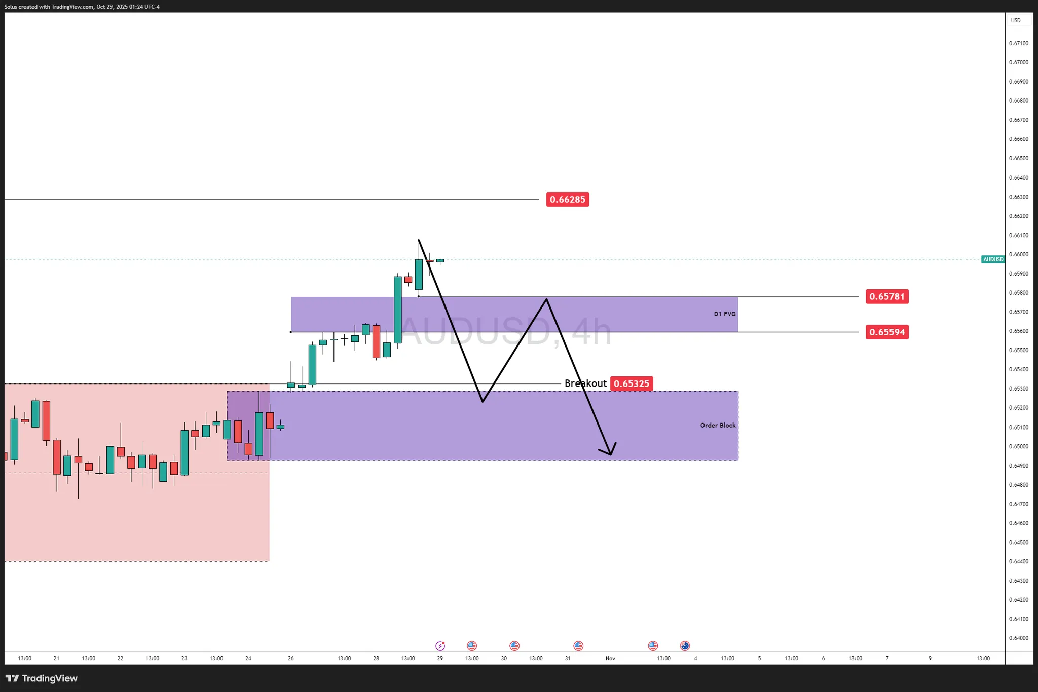 Nếu AUD/USD quay trở lại đường FVG hàng ngày và cho thấy dấu hiệu bị từ chối, hãy mong đợi: