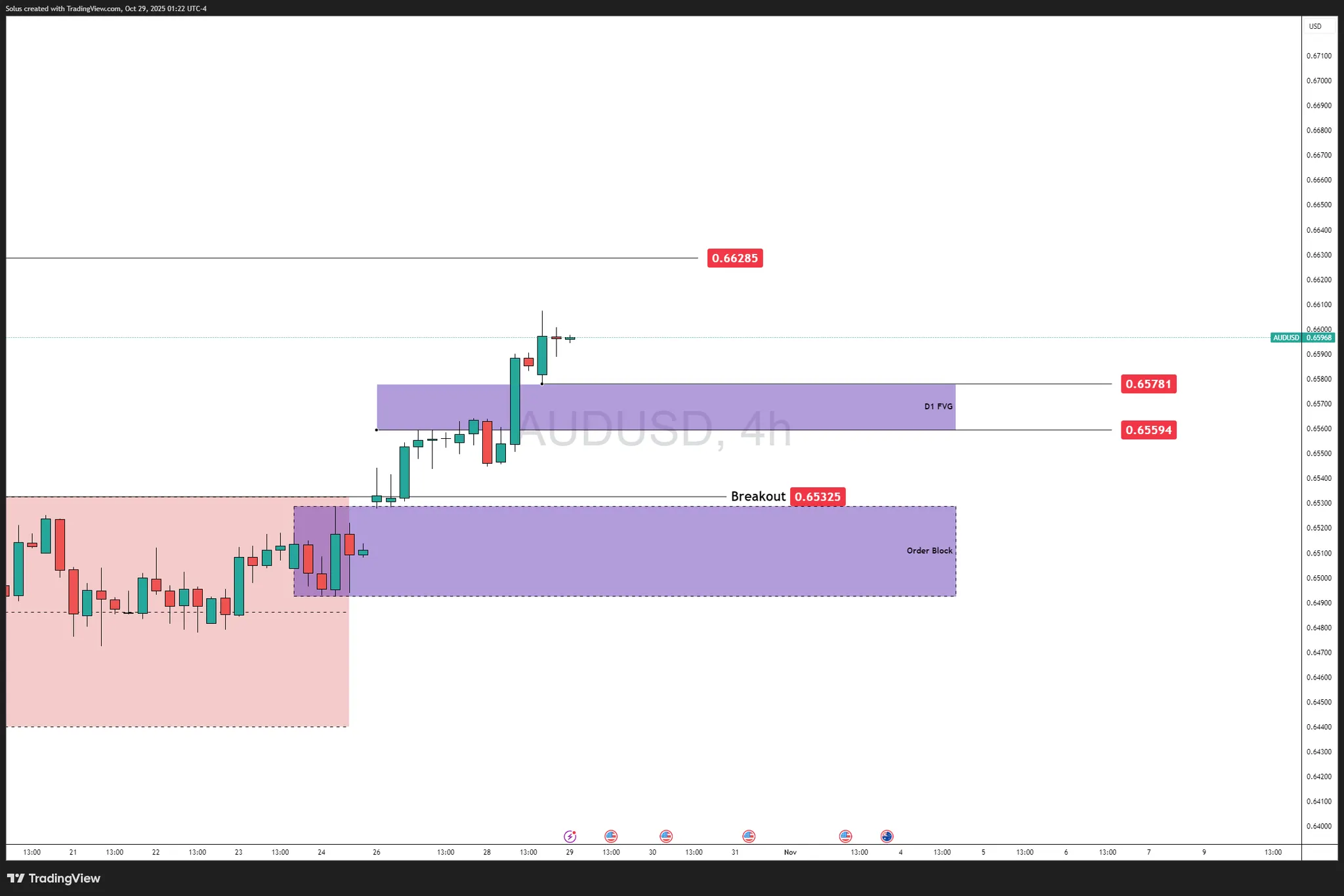 Việc vượt qua ngưỡng 0,65325 báo hiệu sự chuyển đổi từ tích lũy sang mở rộng một đặc điểm hành vi quan trọng của dòng tiền thông minh. Nhiều tuần tích lũy đã tạo ra thanh khoản ở cả hai phía, và một khi vượt qua, giá đã tăng mạnh theo hướng tăng.