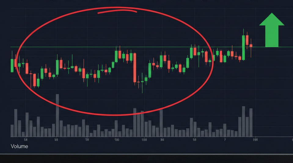 Nếu volume co lại rồi tăng đột ngột → sắp có kết quả.