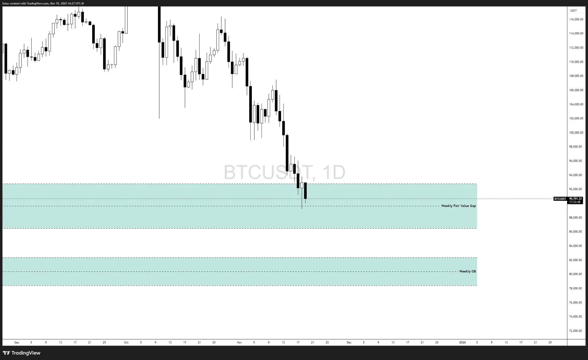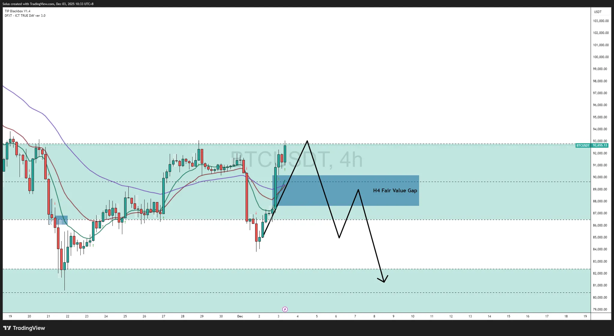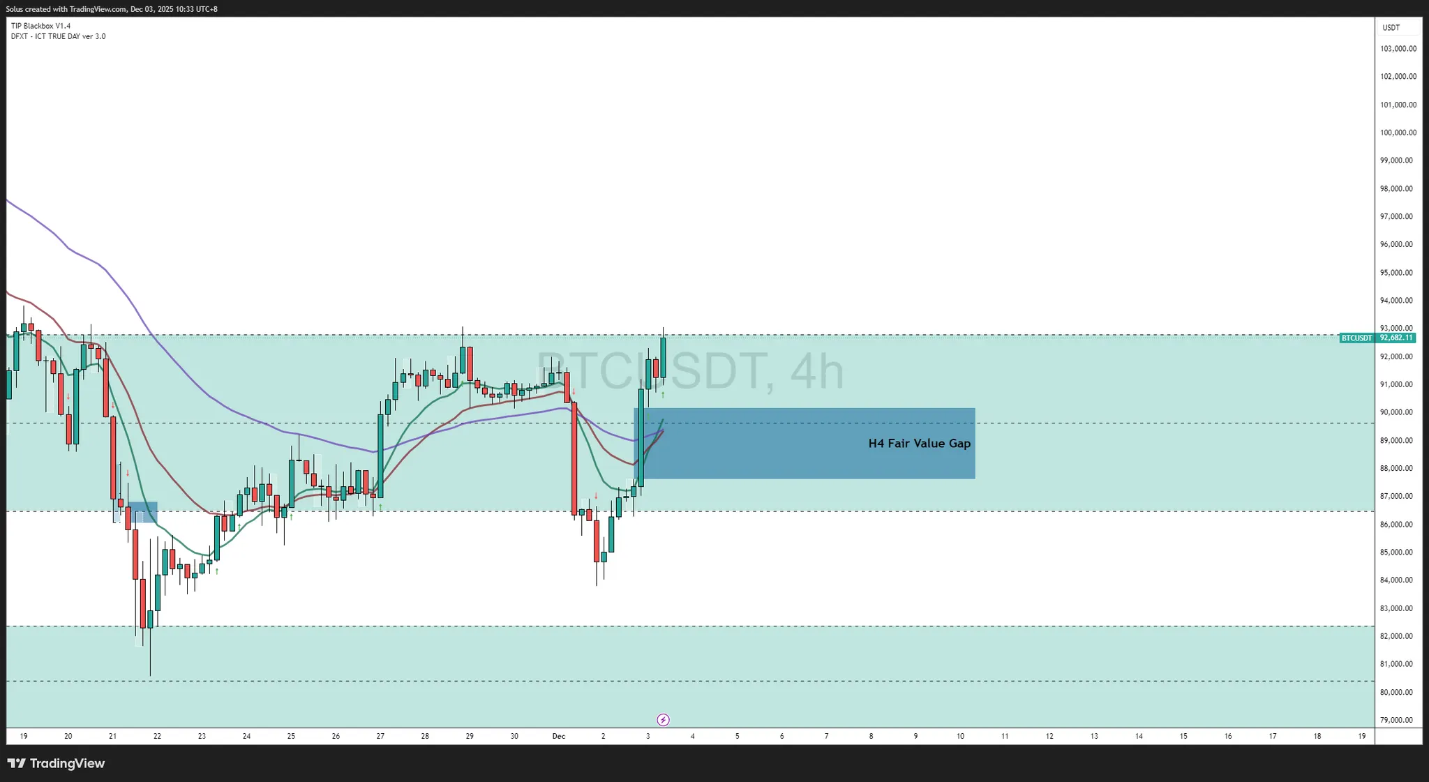 - Sự thoái lui vào Khoảng cách giá trị hợp lý H4 (gần 89.000–90.000 đô la)