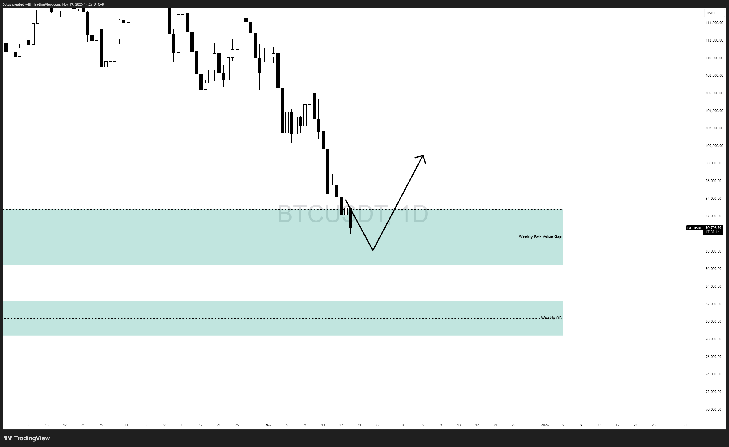 1. Giữ FVG hàng tuần (92.000–86.500)