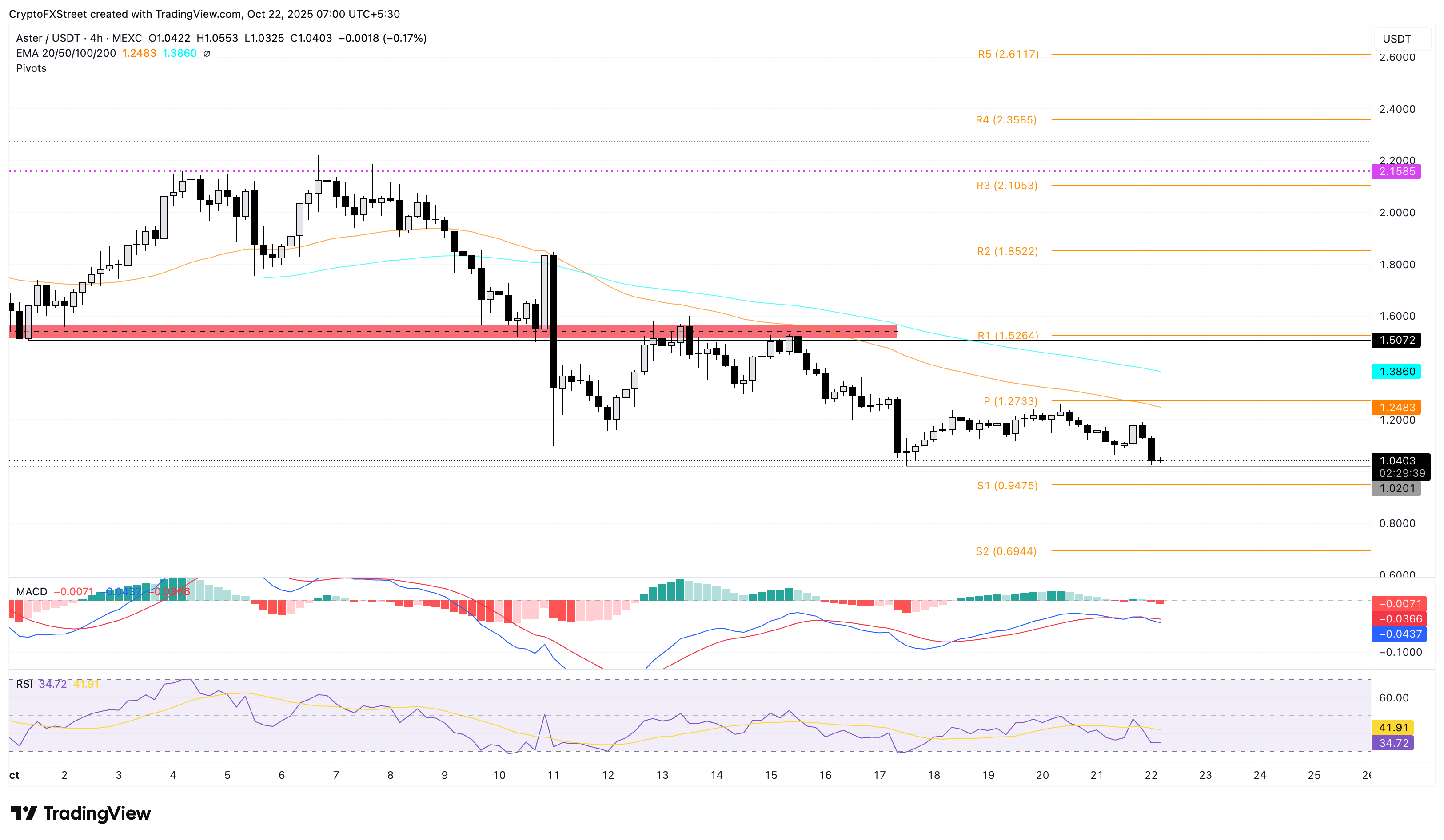 Aster đang giữ trên ngưỡng tâm lý 1 đô la tại thời điểm viết bài vào thứ Tư, sau hai ngày giảm liên tiếp. Nếu token Decentralized Exchange (DEX) giảm xuống dưới 1,00 đô la, nó có thể tìm thấy hỗ trợ tại Điểm xoay S1 ở mức 0,94 đô la.