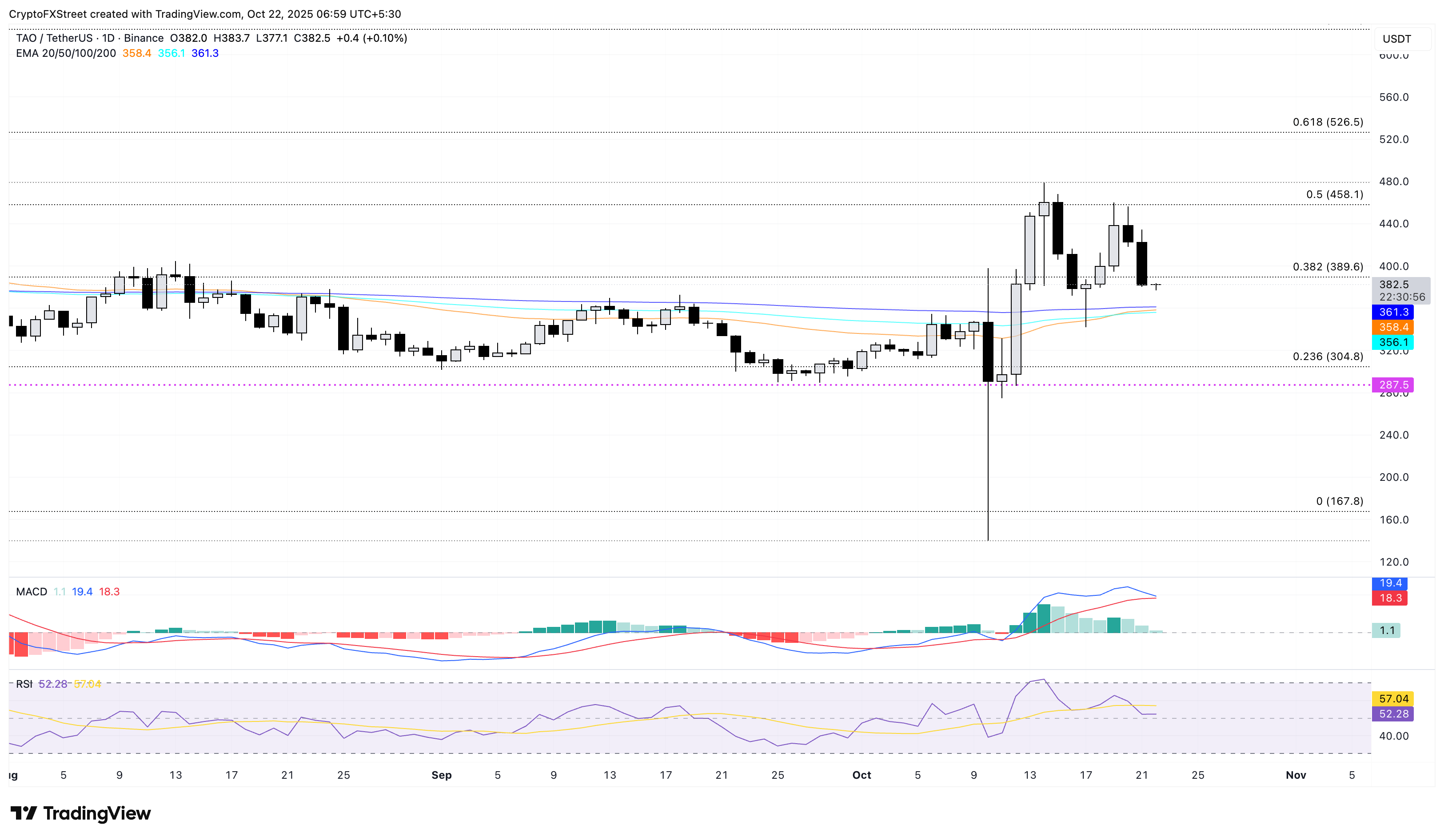 Nếu TAO bật lên từ đường EMA 200 ngày ở mức 361 đô la, giá có thể phải đối mặt với mốc 400 đô la và mức 458 đô la như mức kháng cự trên cao.
