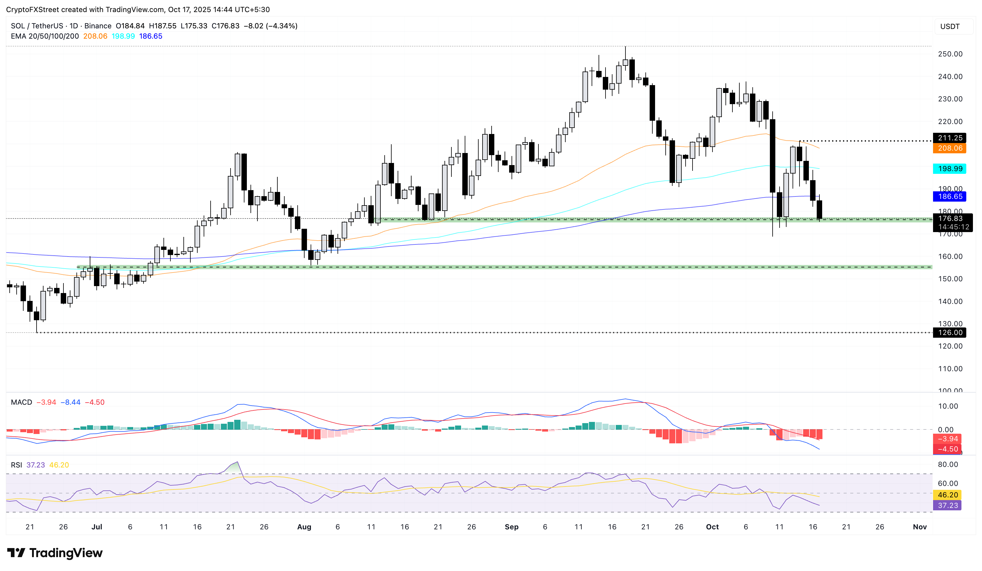 Tương tự, Solana đang gây áp lực lên vùng hỗ trợ 175 đô la, vốn đã phục hồi vào tuần trước, sau khi cắt xuống dưới đường EMA 200 ngày ở mức 186 đô la. Nếu SOL giảm xuống dưới 175 đô la, vùng hỗ trợ 155 đô la có thể bị kiểm tra trước áp lực bán gia tăng.