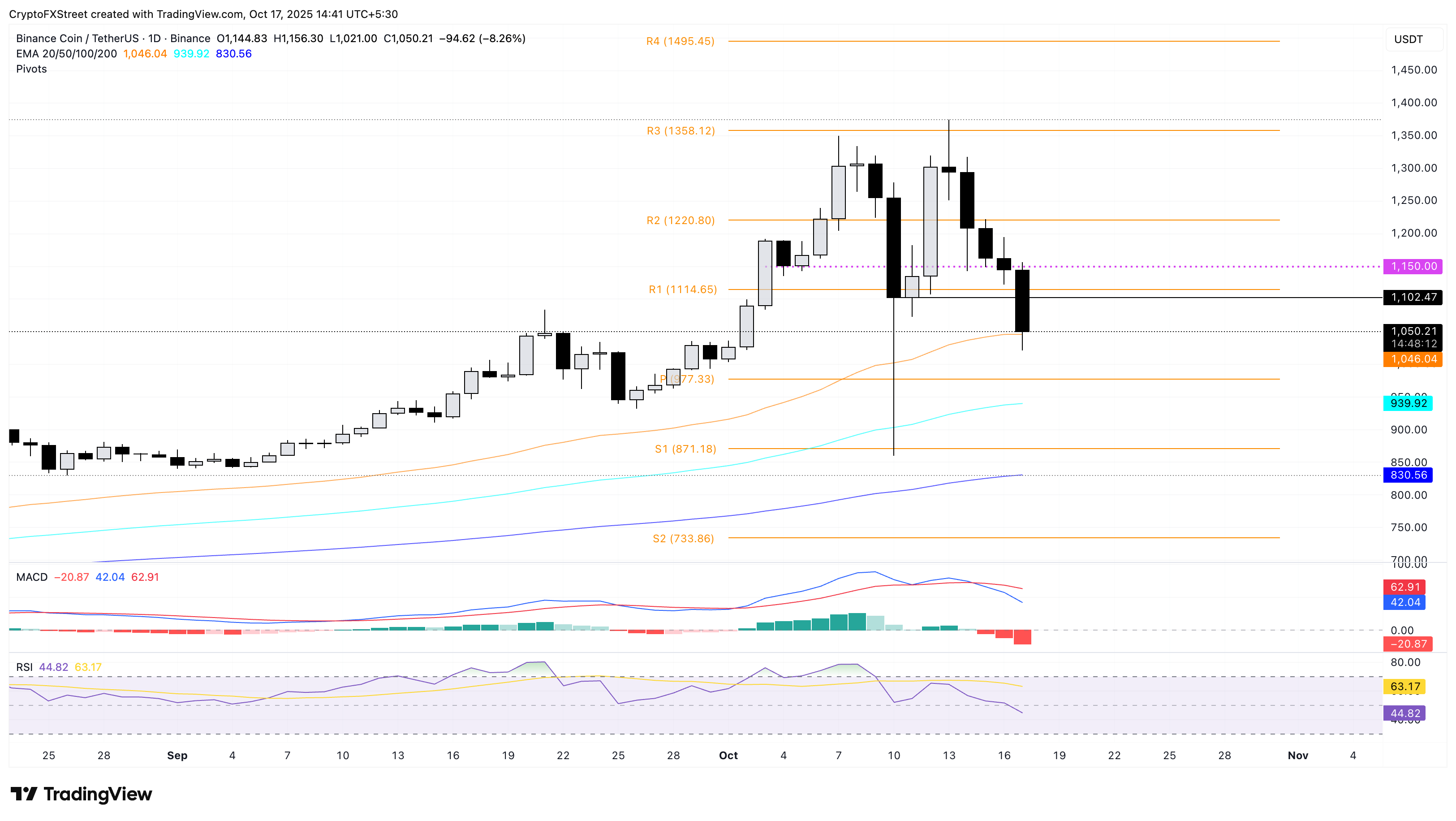 BNB đang kiểm tra đường trung bình động hàm mũ (EMA) 50 ngày ở mức 1.046 đô la, và việc đóng cửa mạnh mẽ dưới mức hỗ trợ động này có thể đe dọa ngưỡng hỗ trợ tâm lý 1.000 đô la. Mức Pivot Point trung tâm ở mức 977 đô la có thể đóng vai trò là ngưỡng hỗ trợ tiếp theo.