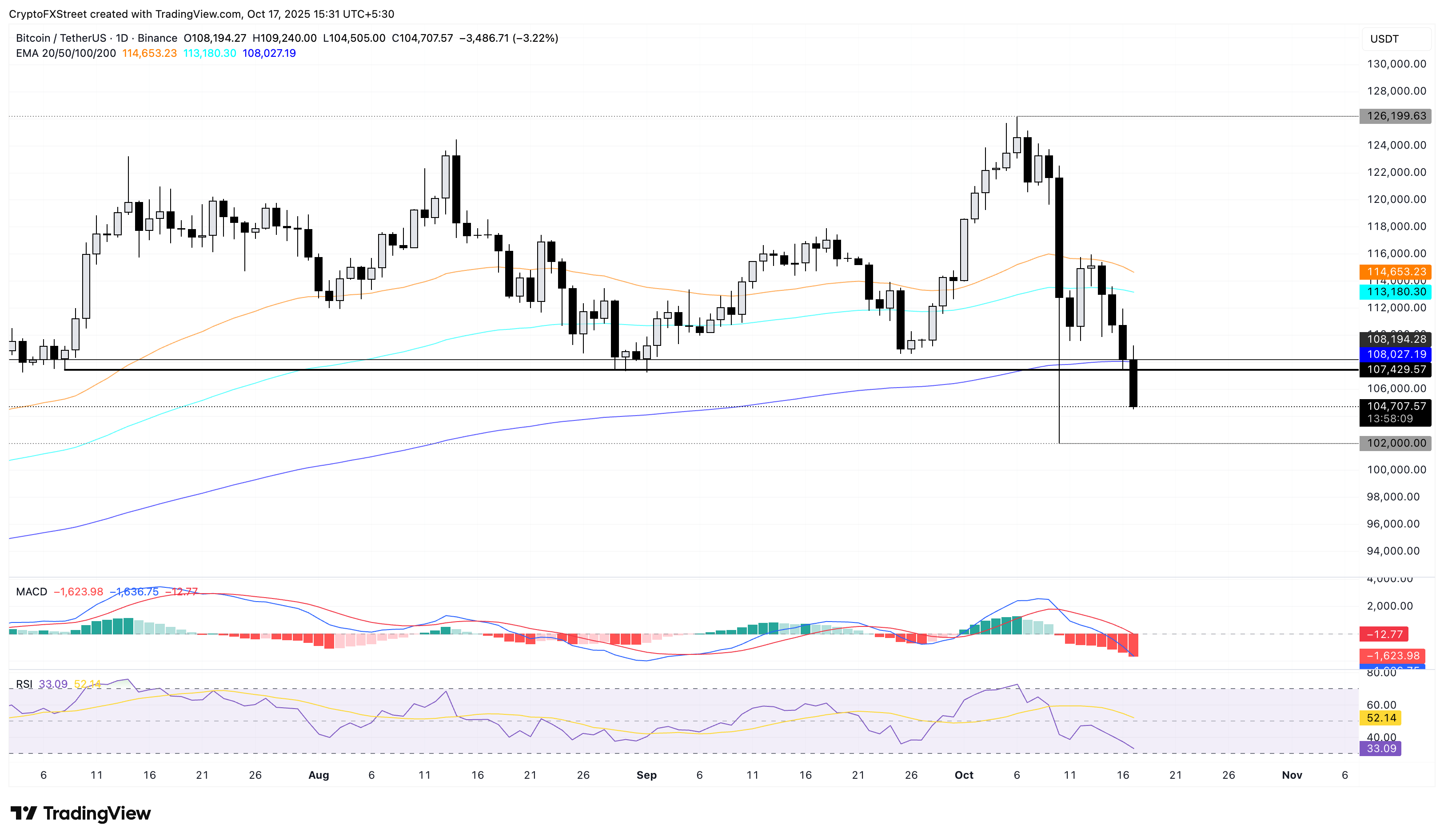 Giữa đợt thoái lui, Bitcoin đang giao dịch dưới 105.000 đô la tại thời điểm viết bài, điều này đã châm ngòi cho làn sóng bán tháo trên toàn thị trường. BNB, Solana và Cardano đã ghi nhận mức lỗ hai chữ số trong 24 giờ qua.