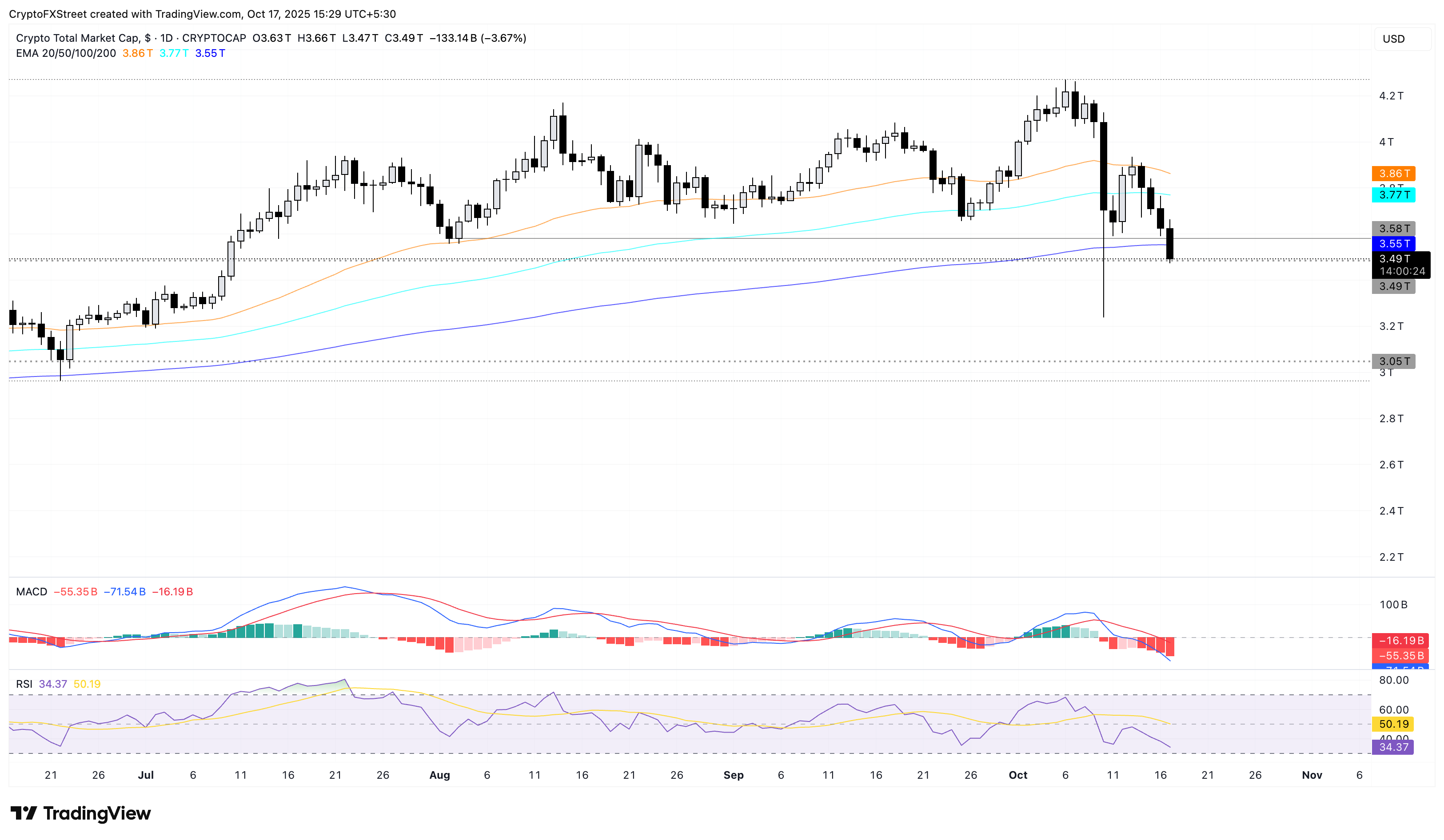 Tổng giá trị thị trường tiền điện tử giảm xuống dưới 3,5 nghìn tỷ đô la với mức lỗ 3% tính đến thời điểm viết bài vào thứ Sáu. Ngày giảm thứ tư liên tiếp khẳng định sự phục hồi ban đầu của tuần này như một cú bật ngược dòng (dead cat bounce) .