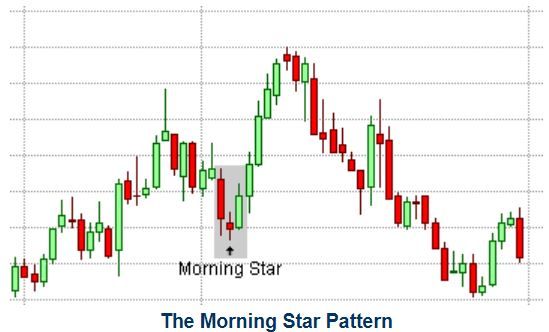 Ngôi sao buổi sáng là một mô hình đáy đảo chiều tăng, ngược lại với ngôi sao buổi tối. Nó cảnh báo sự yếu kém trong một xu hướng giảm có khả năng dẫn đến sự đảo ngược xu hướng. Ngôi sao buổi sáng bao gồm ba chân nến với chân nến ở giữa tạo thành một ngôi sao. Nến đầu tiên trong mô hình ngôi sao buổi sáng phải là một nến giảm với thân thật tương đối lớn. Nến thứ hai là ngôi sao, có thân ngắn được tách ra khỏi cơ thể thực của nến đầu tiên. Khoảng cách giữa các phần thân thực sự của hai chân nến phân biệt một ngôi sao với một nến doji hoặc một spinning top. Ngôi sao không cần hình thành dưới mức thấp của nến đầu tiên và có thể tồn tại trong bóng dưới của nến đó. Ngôi sao là dấu hiệu đầu tiên của sự yếu kém vì nó chỉ ra rằng người bán không thể lái giá gần thấp hơn nhiều so với mức đóng cửa của giai đoạn trước. Điểm yếu này được xác nhận bởi nến thứ ba, phải là nến tăng và phải gần với thân nến thứ nhất.