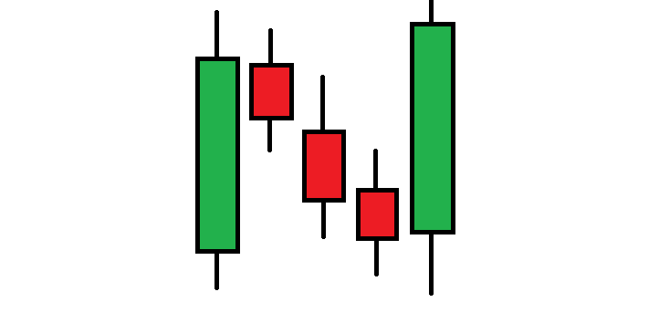 - 3 cây nến tiếp theo (đôi khi có thể là 4) là các cây nến giảm nhẹ với thân nến ngắn và nằm gọn trong thân của cây nến đầu tiên.