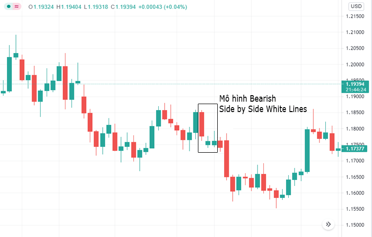 Mô hình tiếp diễn xu hướng giảm Bearish Side by Side White Lines (Nguồn: Internet)