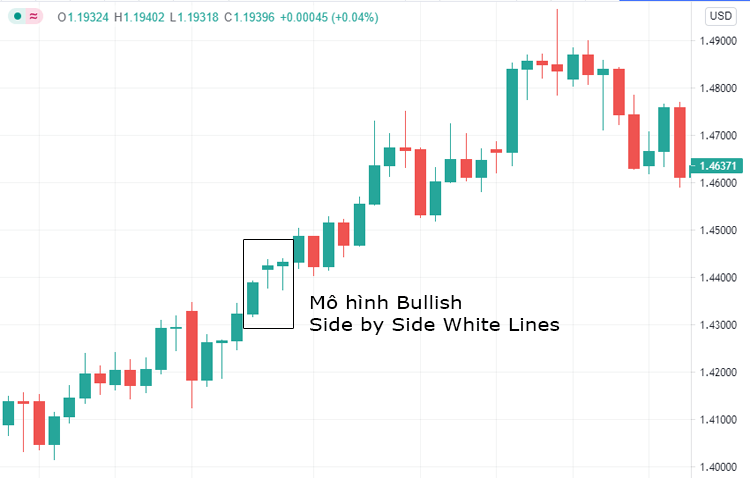 Mô hình tiếp diễn xu hướng tăng Bullish Side by Side White Lines (Nguồn: Internet)