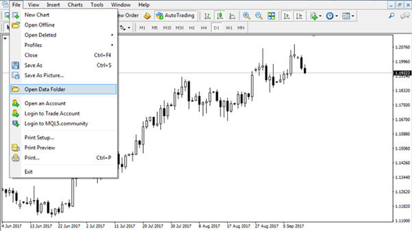 Sau khi tải về, hãy chuyển nó vào MT4 bằng cách chọn File/Open Data Folder và copy file Sync Scroll Indicator đã tải vào thư mục Indicator ở trong mục MQL4.