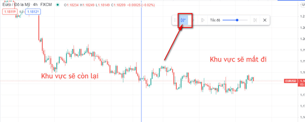 trên thanh công cụ). Sau đó chúng ta có thể kéo biểu đồ về các vị trí trong quá khứ và thực hiện kiểm tra hiệu quả của các chiến lược hoặc mô hình giá như bình thường nhưng ở nhiều khung giờ khác nhau.
