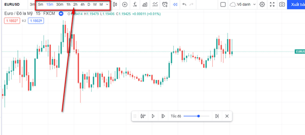 Bây giờ, để backtest đa khung thời gian anh em chỉ cần làm một thao tác rất đơn giản, đó là lựa chọn chuyển đổi giữa các khung thời gian khác nhau với thanh công cụ phía trên: