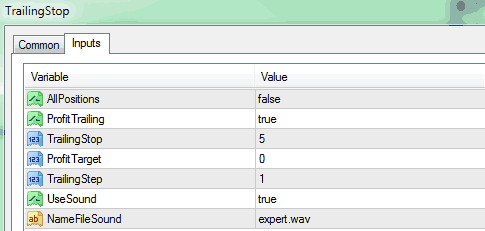 - TrailingStep: Kiểm tra và sửa đổi lệnh trailing stop sau số lần chuyển động pip này.