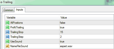 - TrailingStop – điều này cho bạn biết kích thước của điểm trailing stop theo số pips. Mặc định được đặt ở 15 pips.