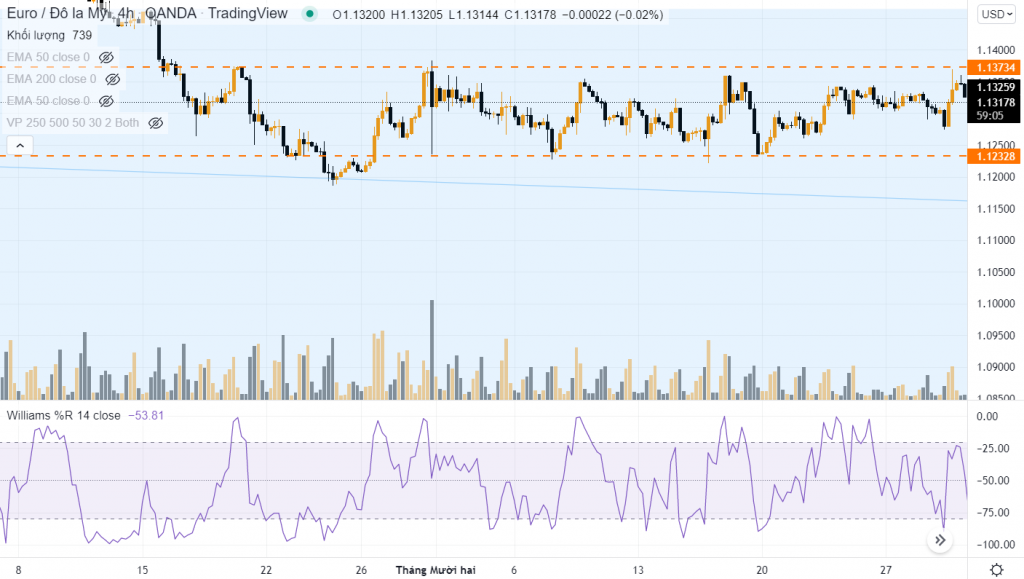 Bước 2: Sau khi xác định phạm vi side way, bước tiếp theo là tìm các tín hiệu của chỉ báo William % R ở các mức cực điểm khi giá phản ứng lại các vùng hỗ trợ – kháng cự của khung giá.