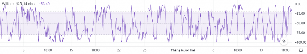 Chỉ báo Williams % R có 2 đường -20 và -80 như một dạng “cảnh báo nhẹ”. Khu vực -80 đến -100 là vùng oversold – quá bán, còn nằm trong vùng -20 và 0 là overbought – quá mua.