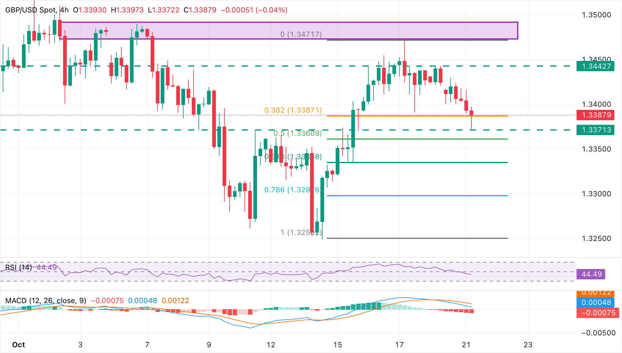 Về cặp GBP/USD, nhà phân tích Guillermo Alcalá của FXStreet nhận định giá sẽ điều chỉnh giảm sau khi đạt đỉnh ở mức 1,3470 vào tuần trước: “Sự phục hồi của GBP/USD đã bị giới hạn ở vùng 1,3470 và cặp tiền này đã giao dịch ở mức thấp hơn kể từ đó, với mức thoái lui Fibonacci 61,8% của đợt tăng giá giữa tháng 10, ở mức 1,3335 nổi lên như một mục tiêu hợp lý cho một đợt điều chỉnh giảm giá.”