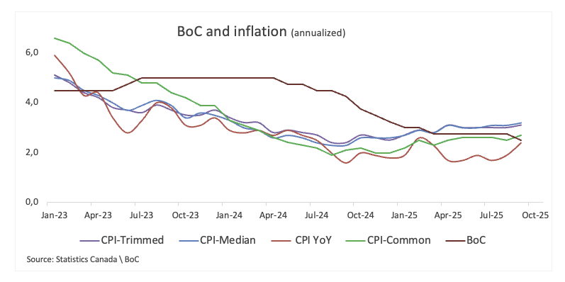 Mọi sự chú ý sẽ đổ dồn vào báo cáo lạm phát vào thứ Hai, khi Cơ quan Thống kê Canada công bố số liệu CPI tháng 10. Dữ liệu này sẽ cung cấp cho Ngân hàng Canada (BoC) bản cập nhật rất cần thiết về áp lực giá cả trước cuộc họp ngày 10 tháng 12, nơi các nhà hoạch định chính sách được kỳ vọng sẽ giữ nguyên lãi suất ở mức 2,25%.