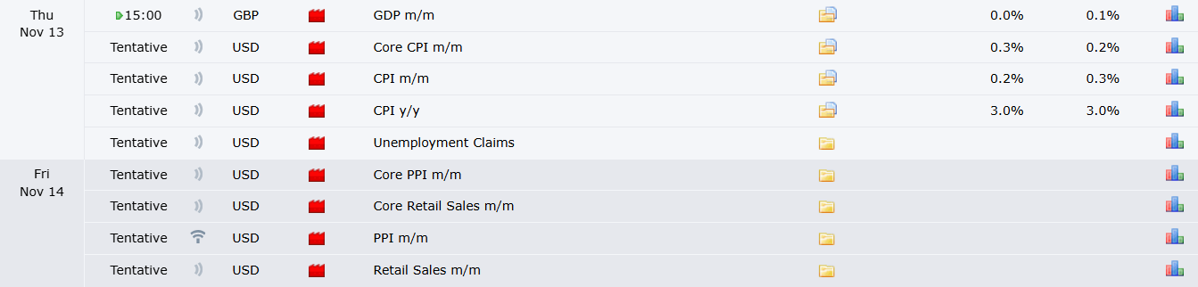 - Báo cáo CPI tháng 10 của Hoa Kỳ, ban đầu được lên lịch vào thứ năm, ngày 13 tháng 11 lúc 8:30 sáng theo giờ miền Đông, hiện dự kiến sẽ bị trì hoãn do tình trạng đóng cửa chính phủ tiếp tục hạn chế hoạt động dữ liệu.