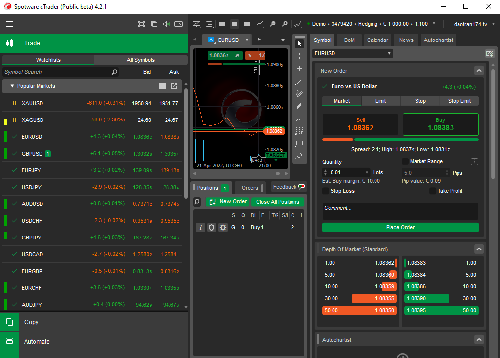 Qua phần giới thiệu, chắc anh em cũng đã biết cTrader là một phần mềm giao dịch, phục vụ cho quá trình phân tích thị trường cũng như thực hiện các lệnh mua bán của anh em, tương tự như phần mềm MT4 và MT5 đến từ Metaquotes.