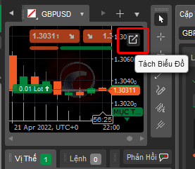 Tiếp theo, tại khu vực chứa danh sách các cặp tiền (bên trái), anh em hãy chọn cặp tiền mình muốn giao dịch và chọn “tách biểu đồ” tại cửa sổ chứa biểu đồ mini ở giữa để phóng to biểu đồ đó ra.