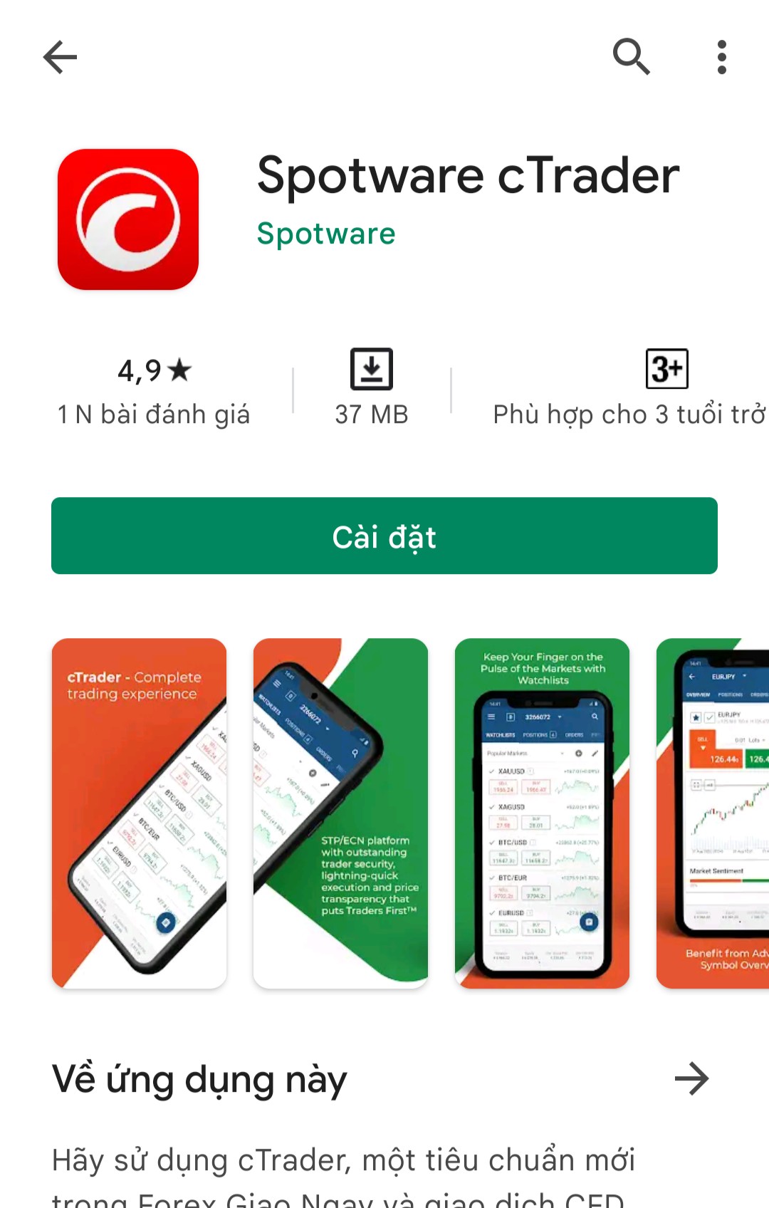 Ứng dụng cTrader trên cửa hàng có giao diện như hình dưới đây: