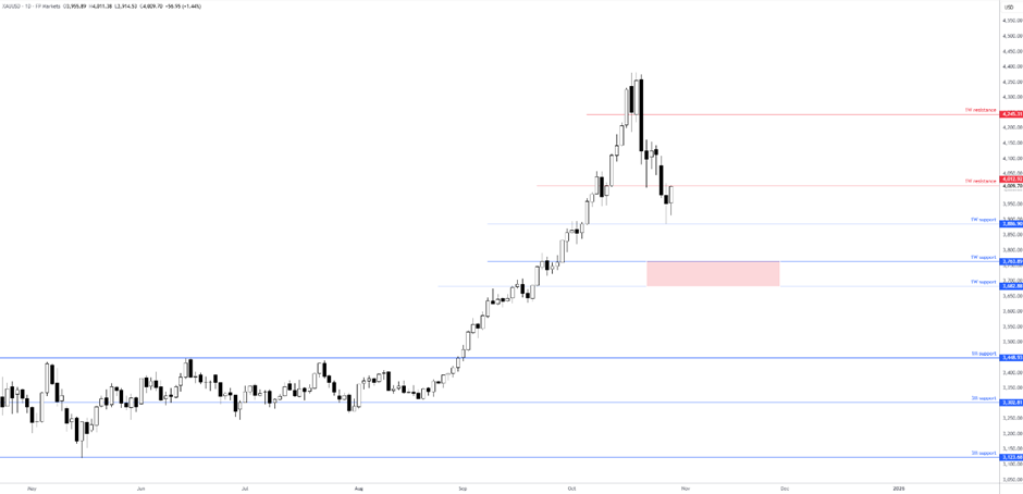 Với việc thị trường tiền tệ đang hoàn toàn kỳ vọng lãi suất sẽ giảm thêm 25 điểm cơ bản vào tháng 12 và gần hai lần giảm nữa vào giữa năm 2026, bất kỳ dấu hiệu nào cho thấy chúng ta có thể không đạt được điều đó đều có thể gây ra những biến động mạnh mẽ về lợi suất trái phiếu Mỹ và đồng USD, đồng thời gây áp lực lên cổ phiếu và vàng . Như thể hiện trong biểu đồ hàng ngày bên dưới, vàng gần đây đã có một phiên mua vừa phải vào đầu phiên giao dịch hôm nay sau khi tìm thấy hỗ trợ tại mức 3.886 đô la Mỹ. Nếu kim loại quý này vượt qua ngưỡng kháng cự 4.012 đô la Mỹ, khả năng giá vàng tiếp tục mua vào tại ngưỡng kháng cự 4.245 đô la Mỹ có thể xảy ra.