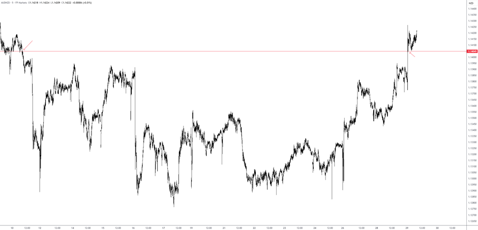 Qua đêm, chúng ta thấy dữ liệu lạm phát tháng 9 của Úc tăng trưởng mạnh; tất cả các chỉ số chính đều vượt kỳ vọng và đẩy cặp AUD/NZD tăng mạnh. Đối với những ai đang tìm cách thoát khỏi sự kiện này mà đã bỏ lỡ đợt tăng giá ban đầu, việc kiểm tra lại ngưỡng kháng cự M5 quanh mức 1,1405 đô la New Zealand đã diễn ra rất tốt (xem bên dưới). Đây là những cơ hội đáng để theo dõi!