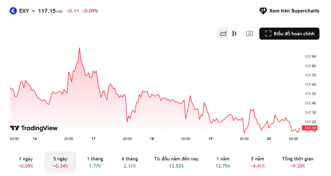 - Chỉ số Tiền tệ Euro (EXY) suy yếu nhẹ → phản ánh tâm lý thận trọng, chưa cho thấy xu hướng mới của EUR.