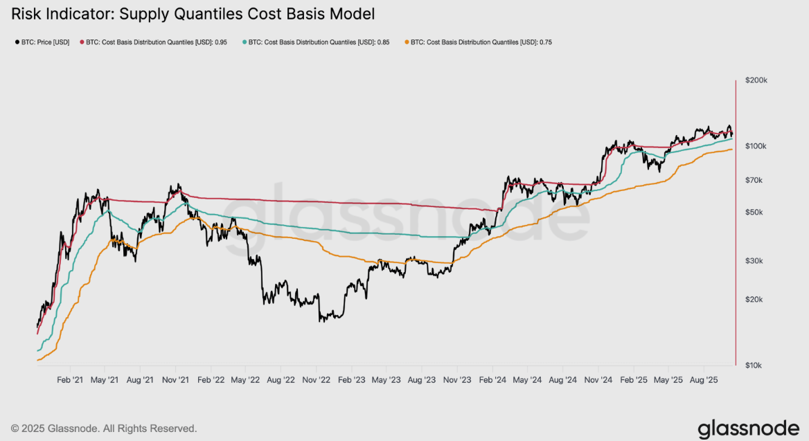 Chỉ báo rủi ro BTC: Mô hình cơ sở chi phí phân vị cung. Nguồn: Glassnode