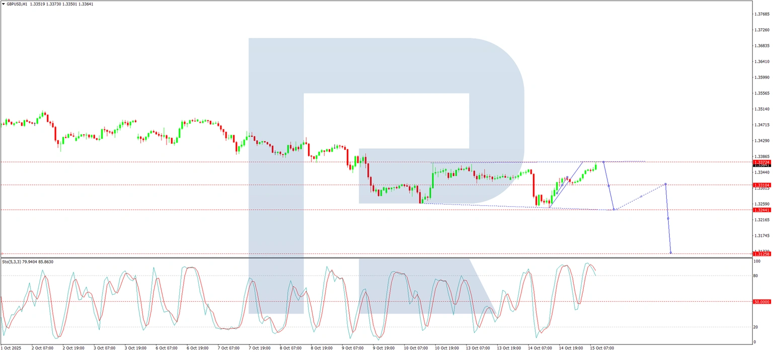Một vùng tích lũy đã hình thành quanh mức 1,3310. Khả năng đột phá giảm giá có vẻ khả thi, báo hiệu sự tiếp diễn của sóng giảm thứ ba hướng đến mục tiêu cục bộ là 1,3125. Triển vọng giảm giá này được hỗ trợ bởi chỉ báo MACD, với đường tín hiệu nằm dưới mức 0 và đang hướng xuống rõ rệt.
