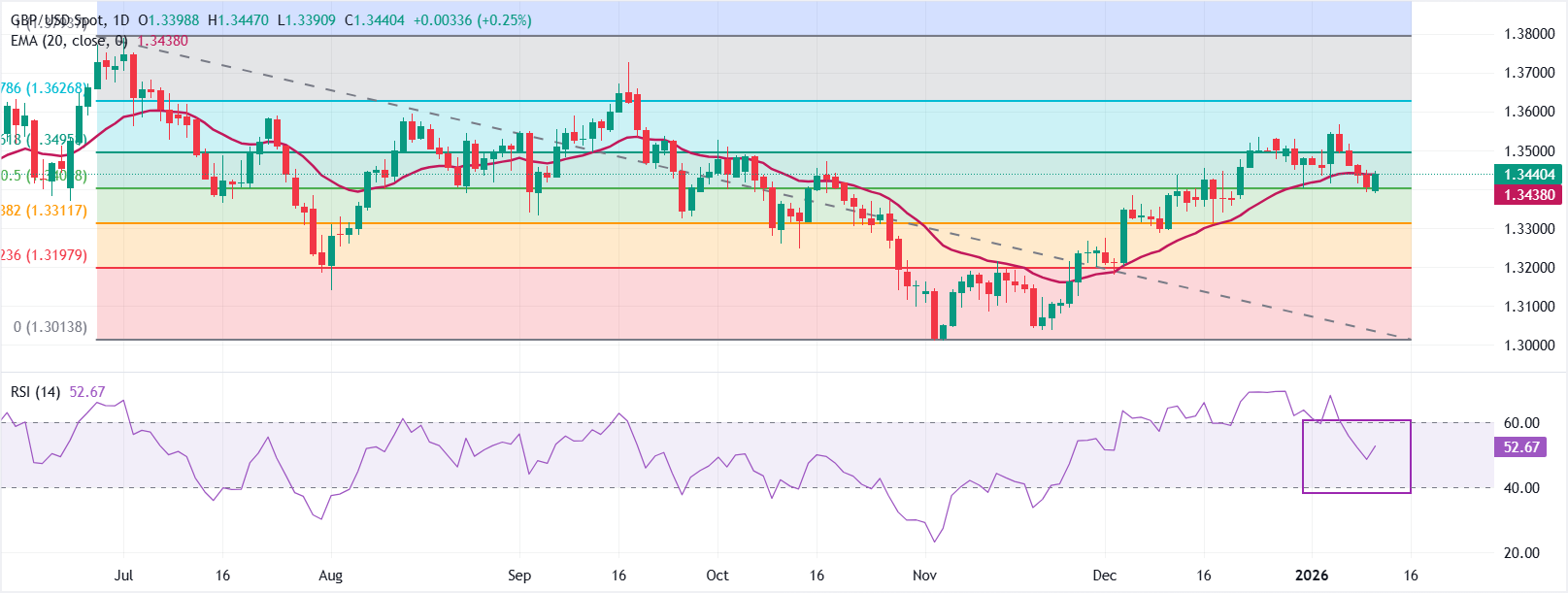 Phân tích kỹ thuật: GBP/USD thu hút lệnh mua khi giá nằm dưới đường EMA 20 ngày.