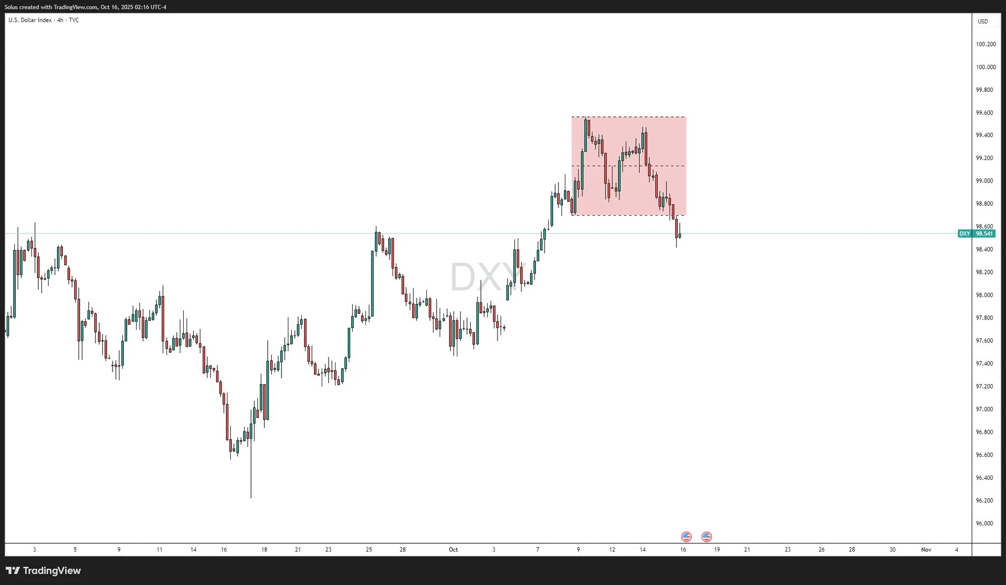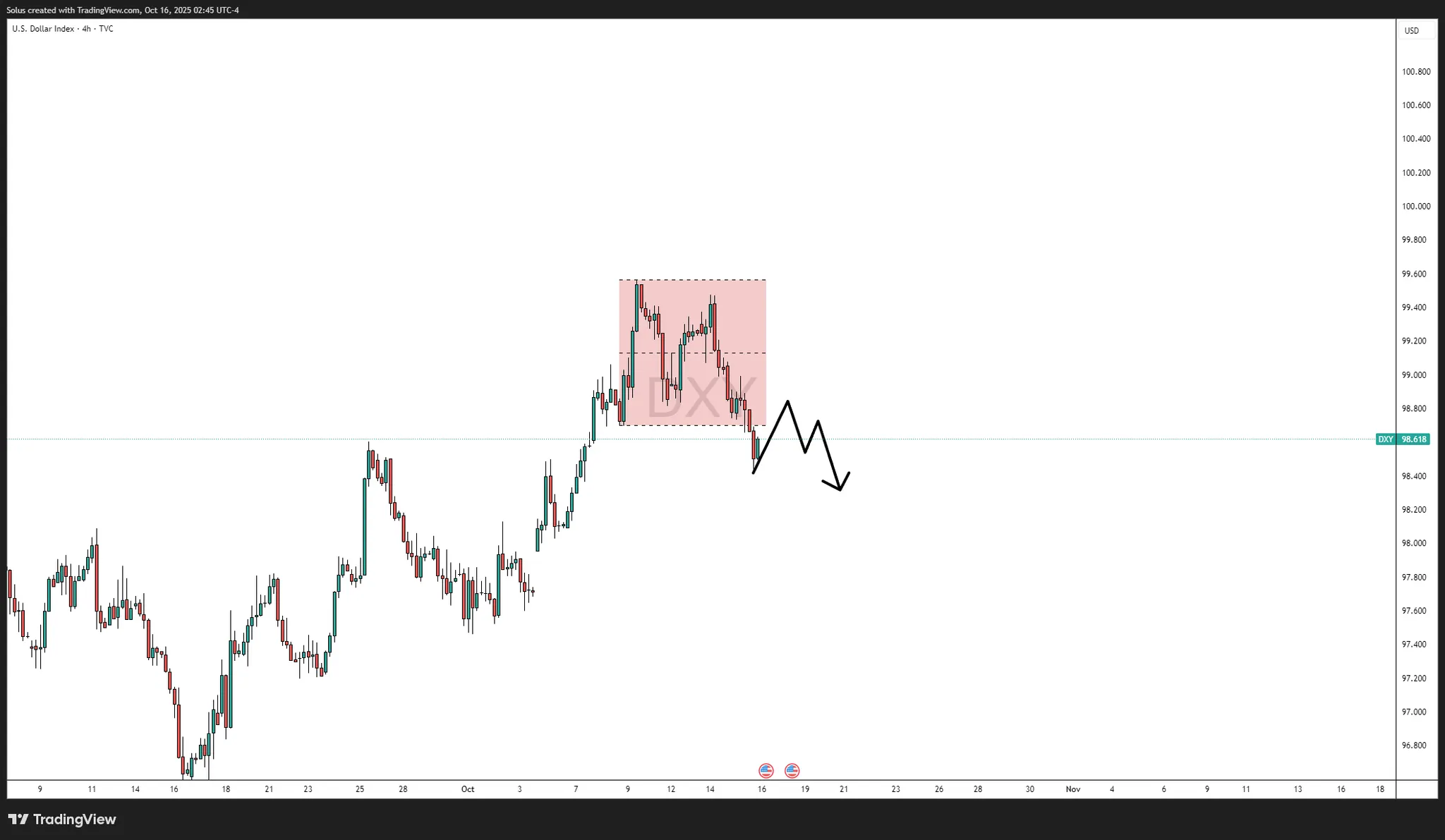Nếu DXY đóng cửa trở lại trên mức 99,00–99,20 , nó có thể tạo ra một đợt phục hồi nhẹ hướng tới mức 99,60–99,80 , báo hiệu rằng Hoa Kỳ đã "trở lại hoạt động".