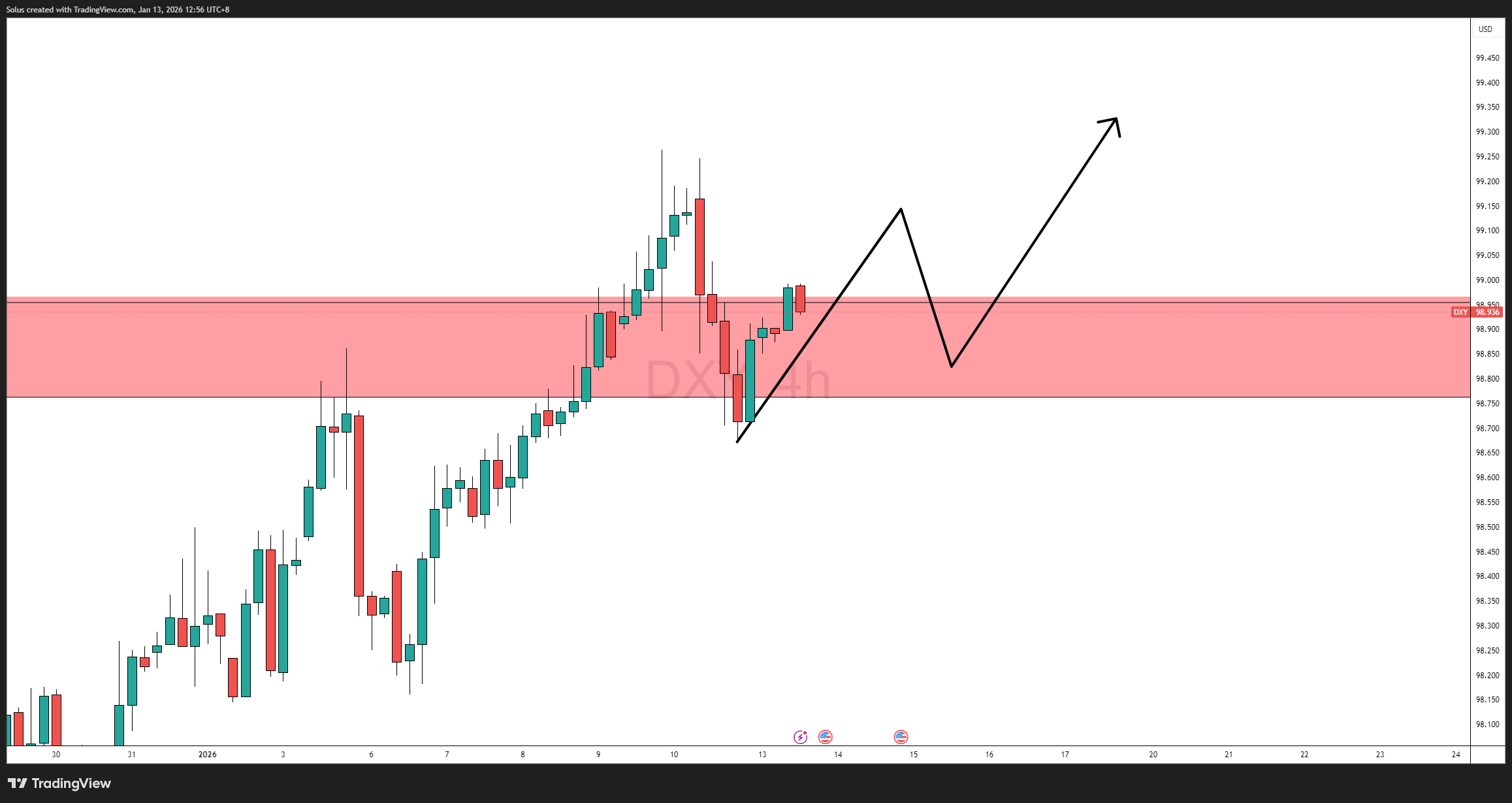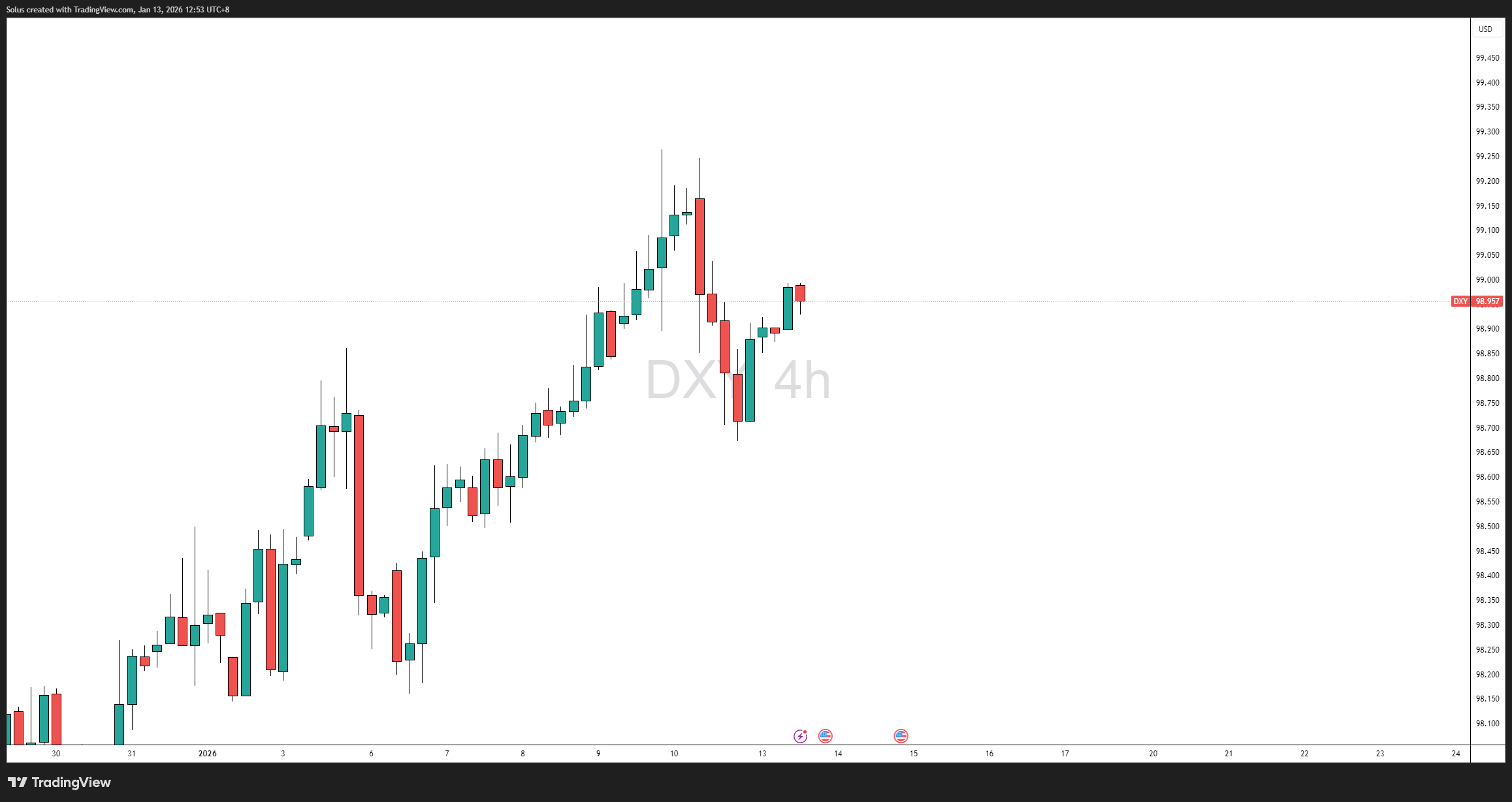 Đồng đô la Mỹ đang ở một điểm quyết định , chứ không phải là một bước đột phá. Giá đã đạt đến vùng giao thoa giữa nguồn cung kỹ thuật và sự bất ổn vĩ mô, khiến chỉ số CPI trở thành chất xúc tác quyết định chứ không chỉ riêng cấu trúc biểu đồ.