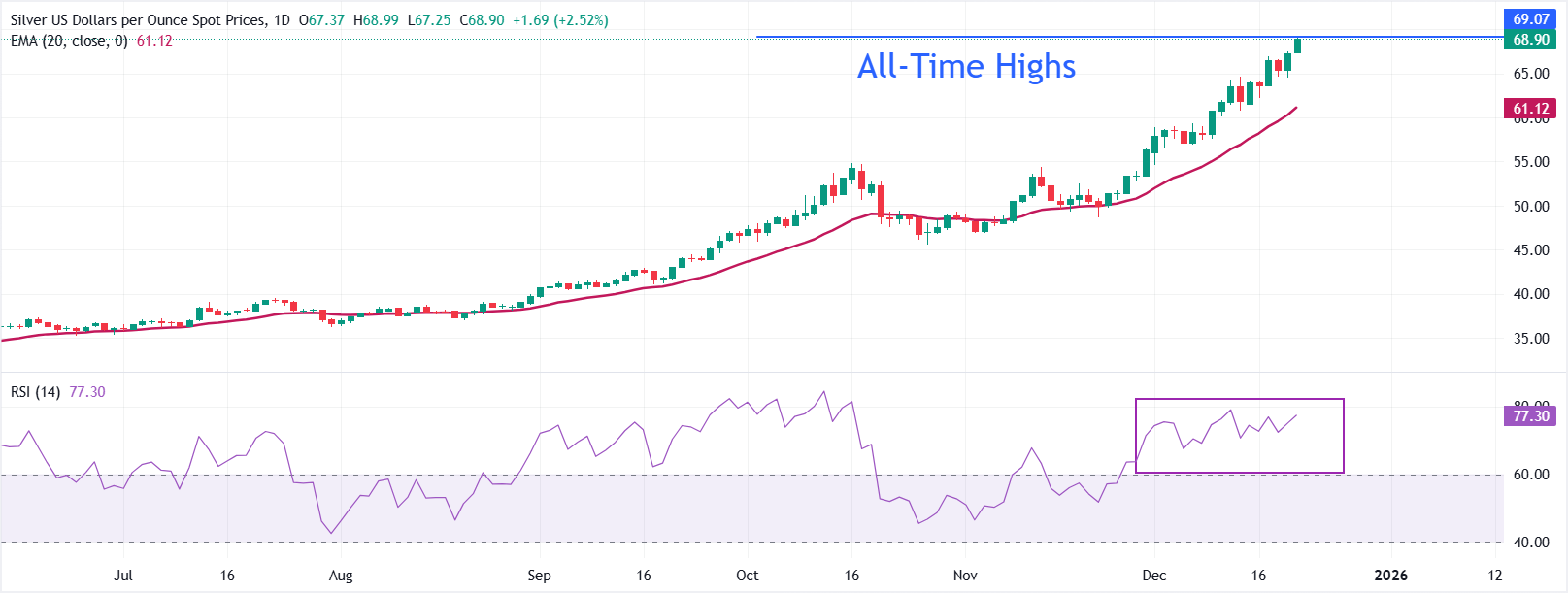 Dự báo giá bạc: XAG/USD đạt mức cao kỷ lục gần 69,00 USD do căng thẳng leo thang giữa Israel và Iran.