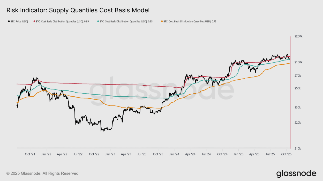 Sự suy yếu về mặt cấu trúc này cho thấy mạng lưới Bitcoin có thể cần một giai đoạn củng cố kéo dài để khôi phục niềm tin của thị trường. Hơn nữa, nếu BTC điều chỉnh, nó có thể quay trở lại mức phân vị 0,75, hiện tại khoảng 97.500 đô la.