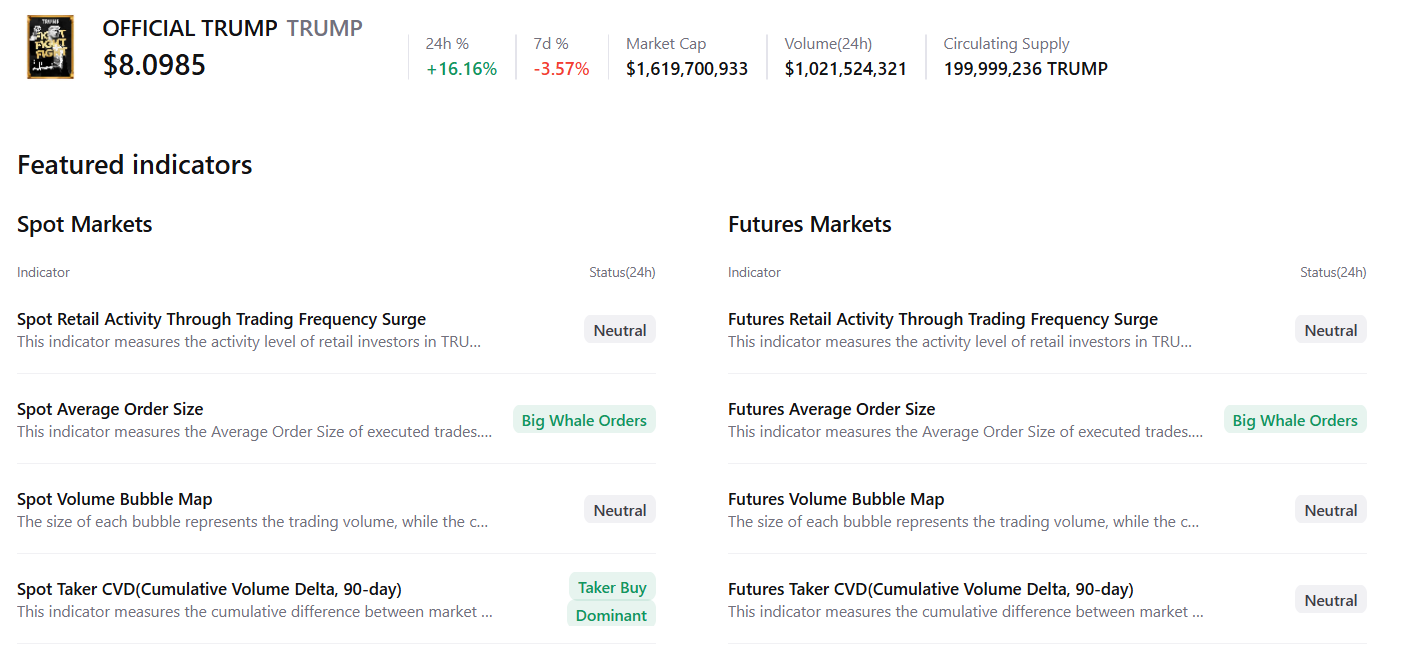 Dữ liệu chuỗi và dữ liệu phái sinh của TRUMP cho thấy xu hướng tăng giá