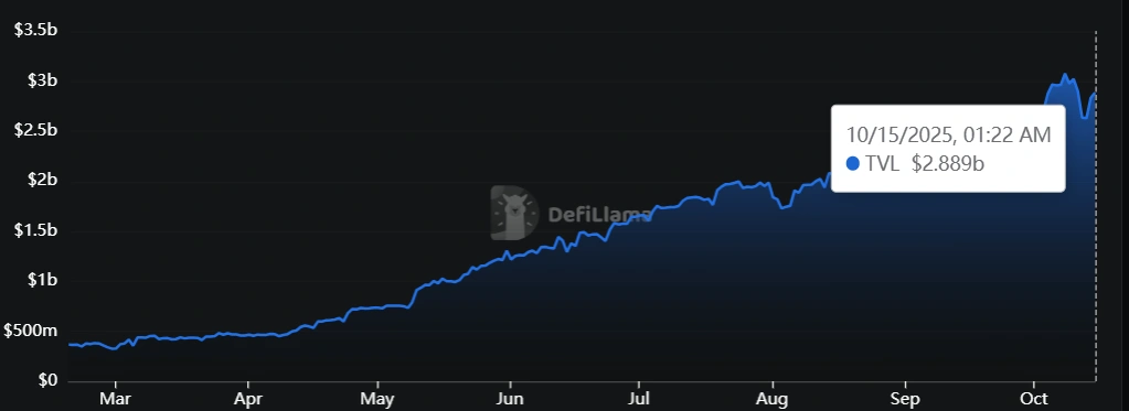 Dữ liệu của DefiLlama cho thấy TVL của Maple Finance tăng lên 2,88 tỷ đô la vào thứ Tư từ 2,63 tỷ đô la vào Chủ Nhật, gần đạt mức cao kỷ lục là 3,07 tỷ đô la đạt được vào ngày 8 tháng 10. TVL tăng cho thấy hoạt động và sự quan tâm ngày càng tăng trong hệ sinh thái của SYRUP, cho thấy ngày càng có nhiều người dùng gửi tiền hoặc sử dụng tài sản trong các giao thức dựa trên SYRUP.