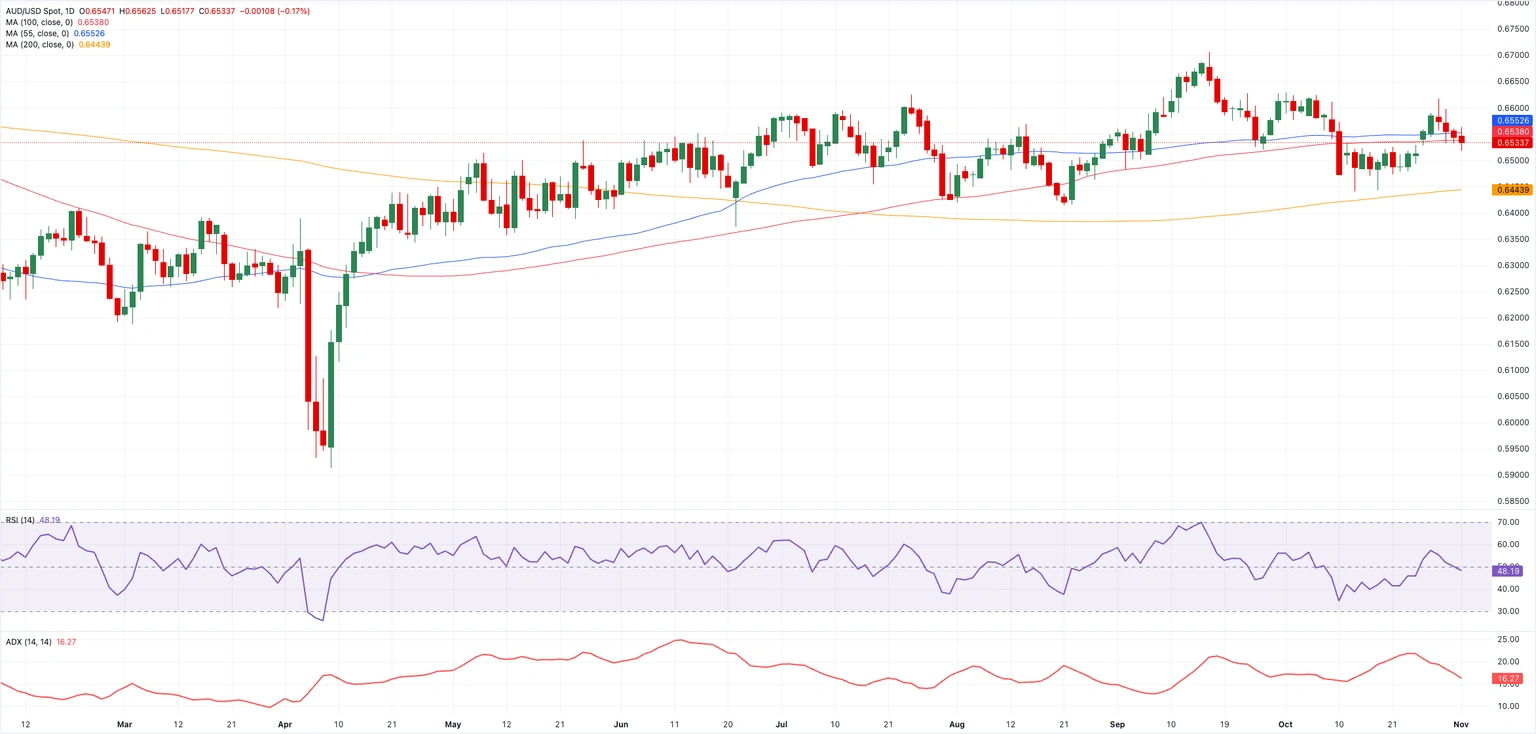Đồng Đô la Úc (AUD) đã khởi đầu tuần mới với đà giảm điểm, kéo dài đà giảm gần đây. AUD/USD có vẻ như sẽ sớm kiểm tra vùng hỗ trợ quan trọng 0,6500 nếu xu hướng giảm hiện tại tiếp tục.