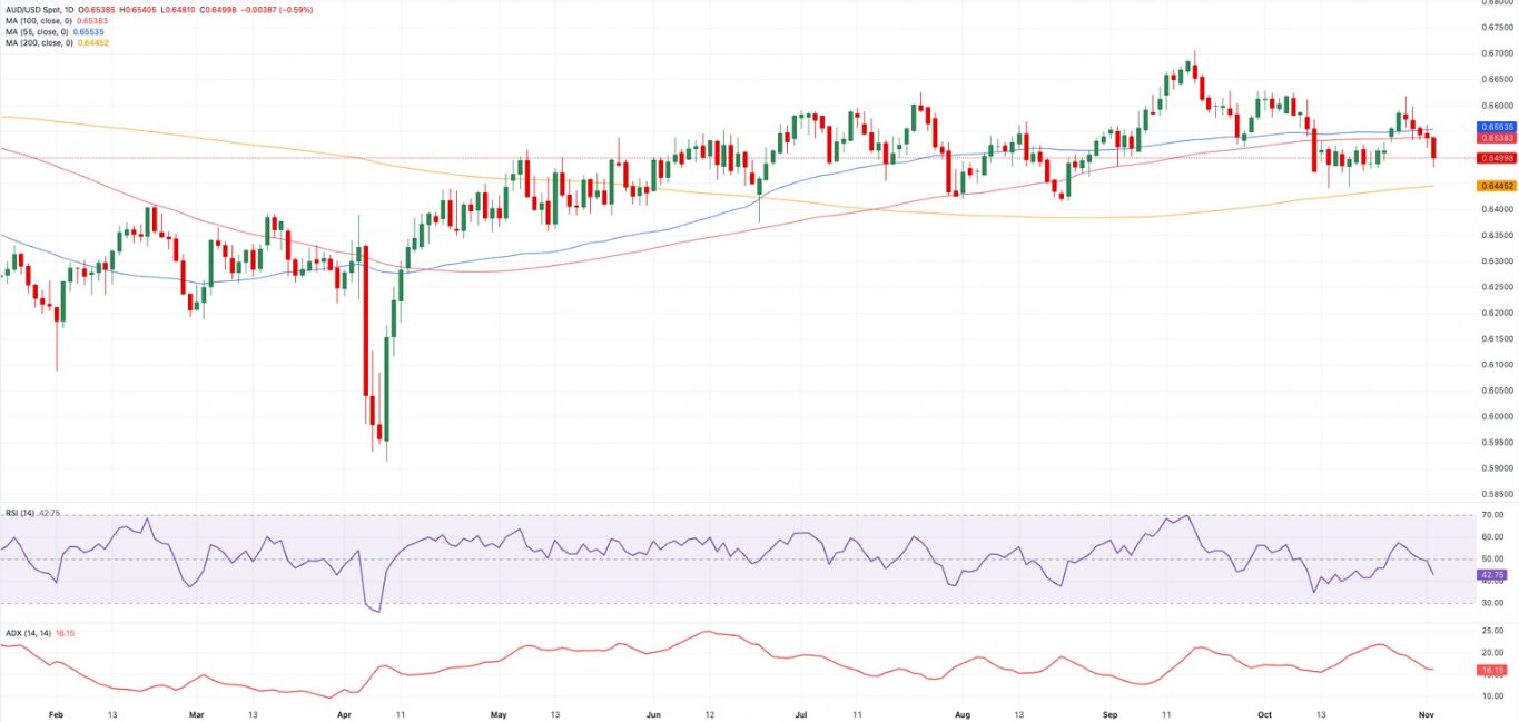 - AUD/USD ghi nhận đợt giảm giá trong ngày thứ năm liên tiếp, giảm xuống dưới mốc 0,6500.