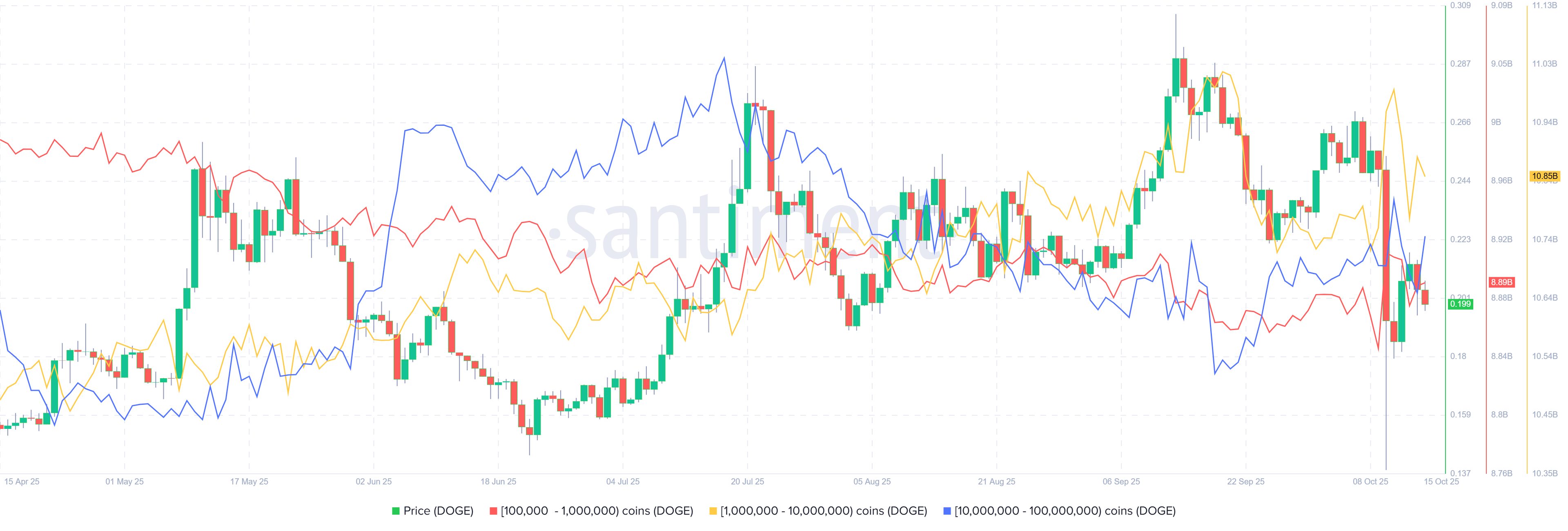 Dữ liệu phân phối nguồn cung của Santiment ủng hộ luận điểm phục hồi của Dogecoin, vì ví cá voi đã mua token DOGE khi giá giảm gần đây.