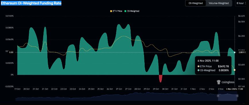 Tỷ lệ tài trợ theo trọng số OI của Ethereum | Nguồn: CoinGlass