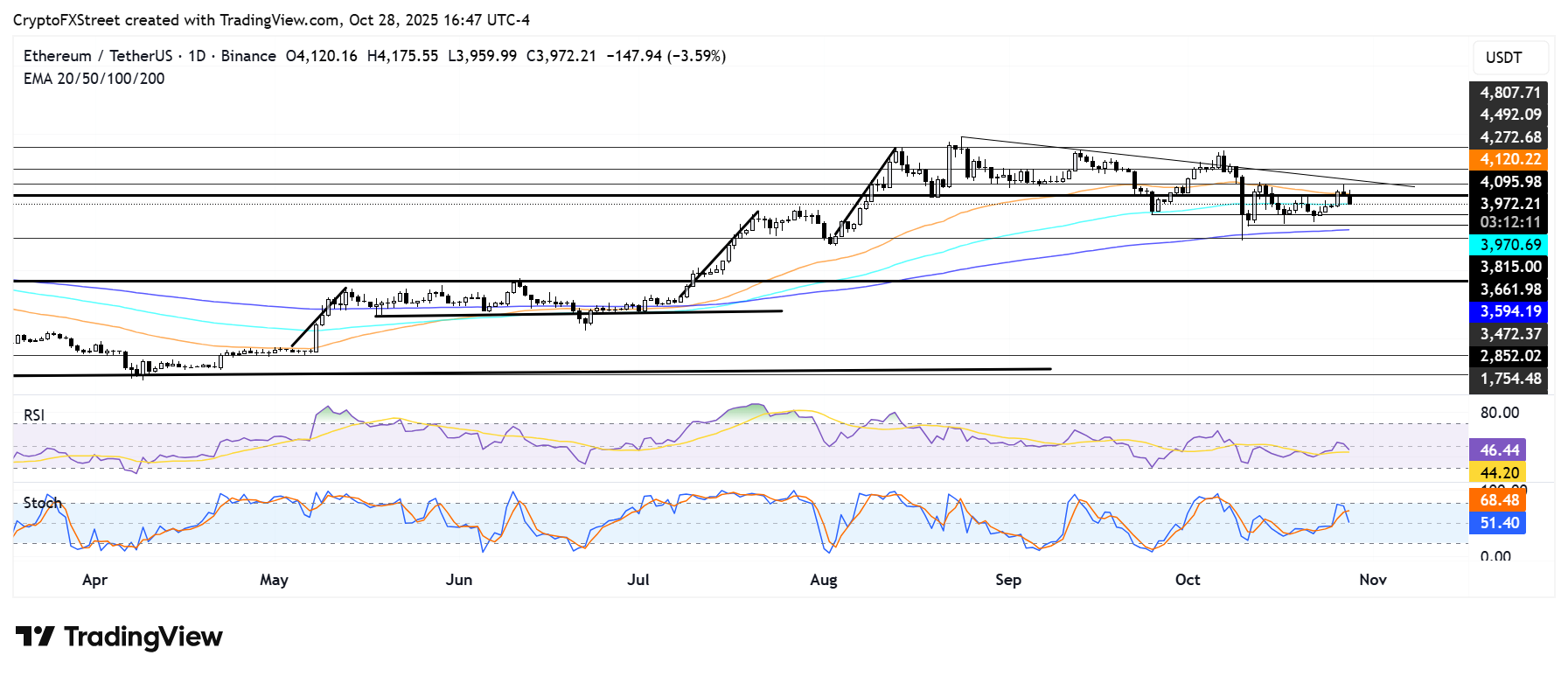 Dự báo giá Ethereum: ETH giảm xuống dưới mức quan trọng 4.100 đô la, kiểm tra đường EMA 100 ngày