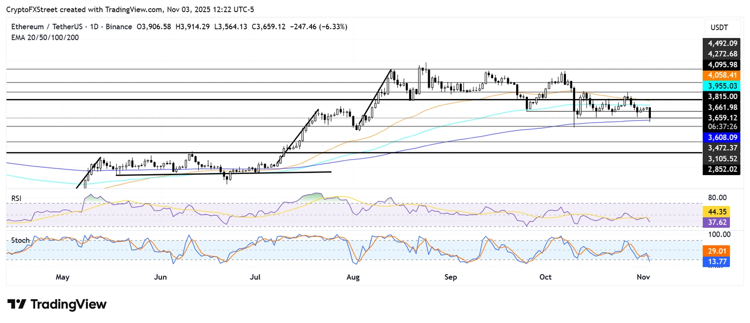 Dự báo giá Ethereum: ETH giảm 7%, hướng tới mức hỗ trợ 3.470 đô la