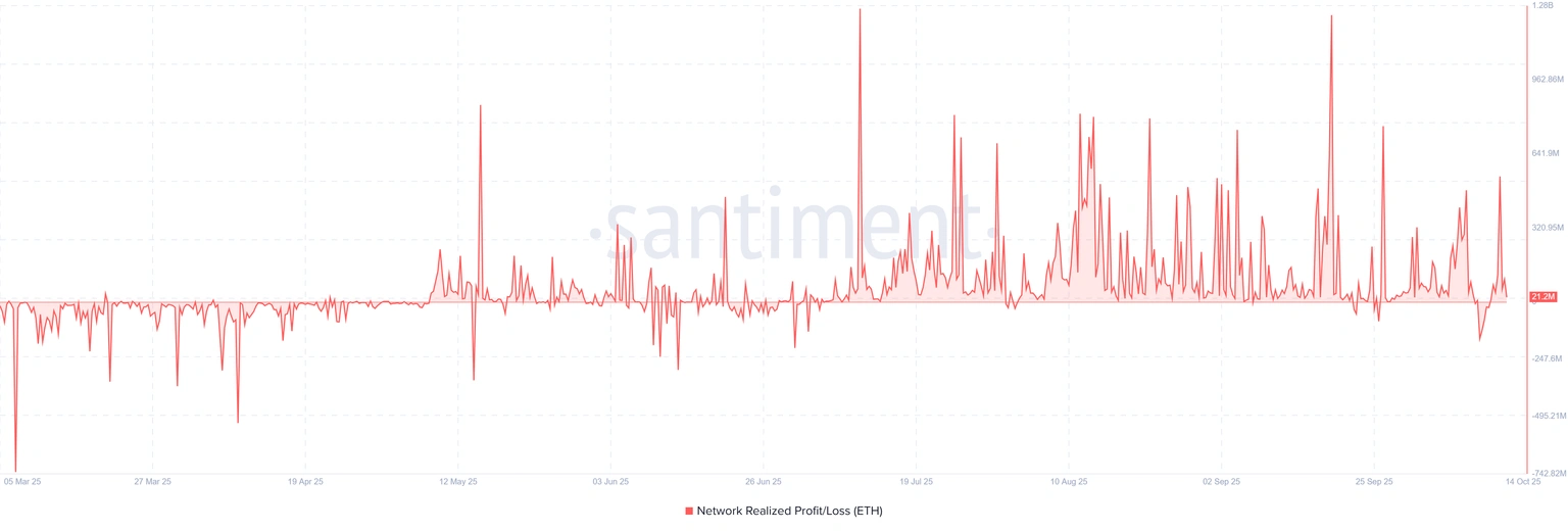Lợi nhuận/Lỗ thực tế của Mạng lưới ETH. Nguồn: Santiment