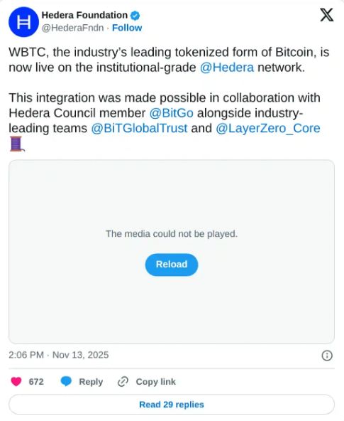 Hôm thứ Năm, Hedera đã công bố việc tích hợp Wrapped Bitcoin, hợp tác với BitGo và LayerZero, nhằm bổ sung một lớp thanh khoản mới cho mạng lưới. Phương pháp tiếp cận mới mẻ của Hedera về thanh khoản , sử dụng WBTC - một Bitcoin được mã hóa theo tỷ lệ 1:1 trên blockchain Ethereum - thay vì các stablecoin được bảo chứng bằng đô la Mỹ, giúp nâng cao các dịch vụ tài chính phi tập trung (DeFi) dựa trên BTC trên mạng lưới.