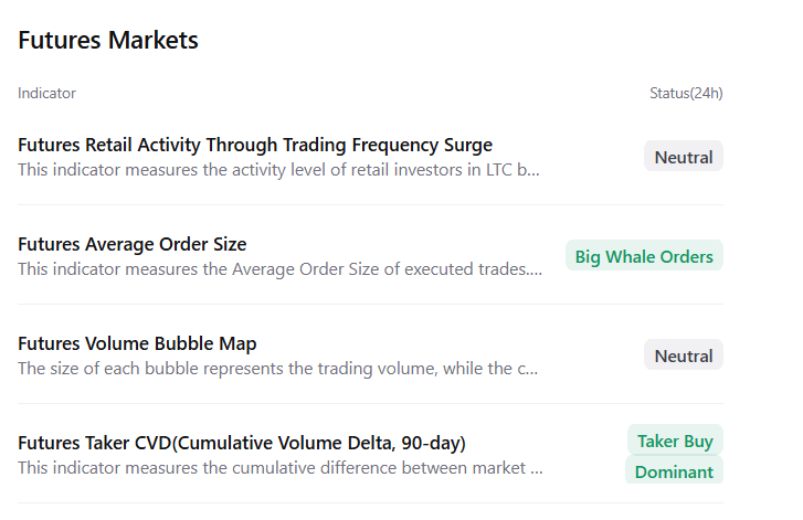Dữ liệu Tỷ lệ Tài trợ Trọng số OI của CoinGlass cho thấy số lượng nhà giao dịch đặt cược rằng giá Litecoin sẽ giảm sâu hơn thấp hơn so với số lượng nhà giao dịch dự đoán giá sẽ tăng. Chỉ số này đã chuyển sang mức dương và hiện đang ở mức 0,0055%, cho thấy các lệnh mua đang trả lãi cho các lệnh bán, cho thấy tâm lý lạc quan của các nhà giao dịch.