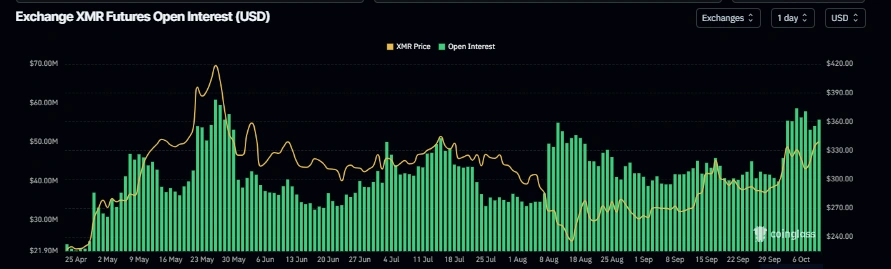Biểu đồ lãi suất mở của XMR. Nguồn: Coinglass